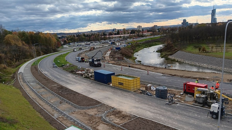 Na jezdniach ułożono warstwę wiążącą, która czeka na ścieralną. Gotowe są betonowe zatoki autobusowe. Ciągi piesze mają krawężniki i większość nawierzchni. Na ścieżkach rowerowych ułożono warstwę nośną z kruszywa. Po położeniu ścieralnej budowlańcy zaczną prace wykończeniowe i te związane z organizacją ruchu drogowego. Stoją już słupy oświetleniowe, trwa montaż osprzętu. Na skarpach kończą umocnienia. Do wykonania zostaje zabezpieczenie brzegu Wisłoka materacami siatkowo-kamiennymi.