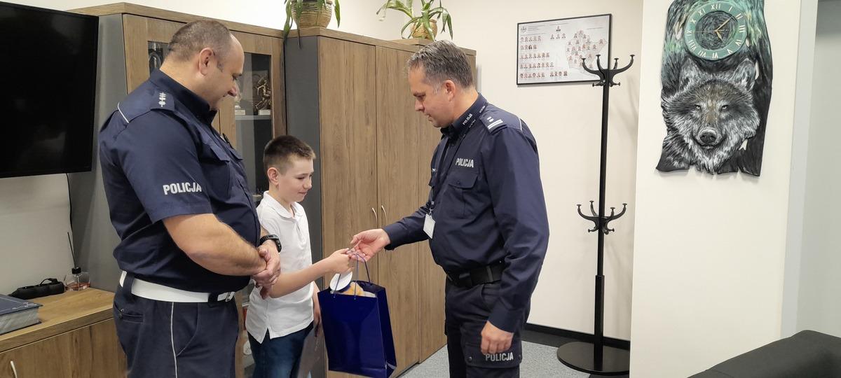 Chłopcu osobiście podziękował komendant powiatowy policji w Lesku, mł. insp. Grzegorz Koczera, wręczając mu upominek i stawiając za wzór do naśladowania.