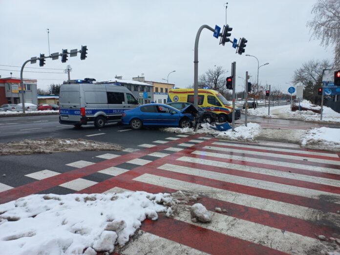 Wjechał na skrzyżowanie na czerwonym świetle i doprowadził do zderzenia z citroenem. Do szpitala przewieziono jedną osobę.