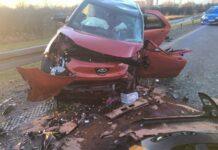 18-latek na łuku drogi w Jarosławiu stracił panowanie nad pojazdem, po czym zjechał z drogi i uderzył w drzewo. Siła uderzenia zmasakrowała przód pojazdu.