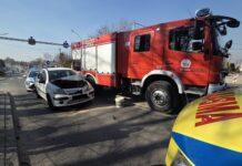 Jedna osoba ranna po zderzeniu dwóch aut w pobliżu remizy strażackiej