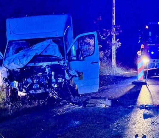 Nietrzeźwy kierowca wpadł dostawczakiem do potoku. Jeden z pasażerów nie żyje