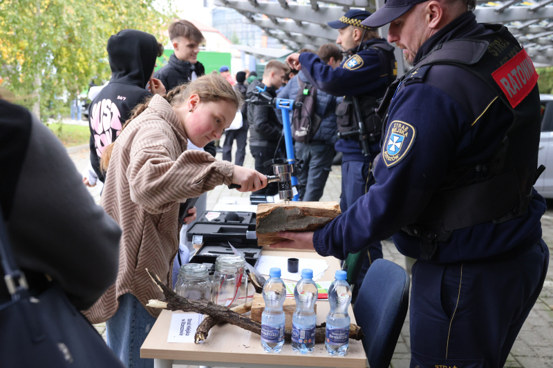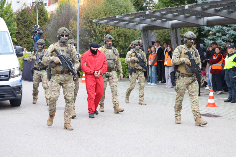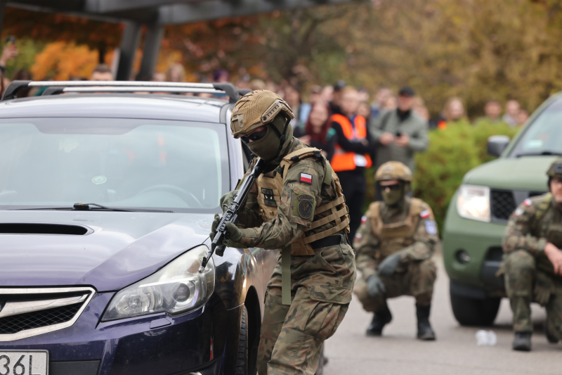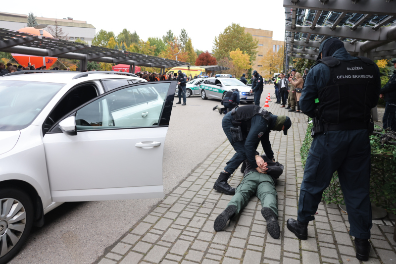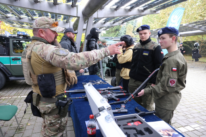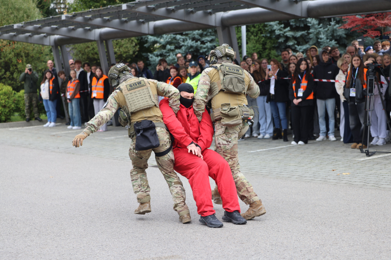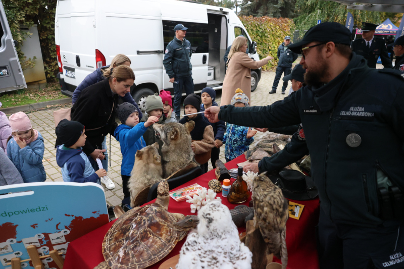 Atrakcji było wiele. Na placu przed budynkiem stały pojazdy specjalne – roboty pirotechniczne Straży Granicznej, mobilne systemy rentgenowskie do inspekcji samochodów KAS, karetki ratunkowe, pojazdy pożarnicze. Młodzież mogła zobaczyć na żywo pracę Grupy Interwencyjnej Służby Więziennej, Krajowej Administracji Skarbowej i Policji.