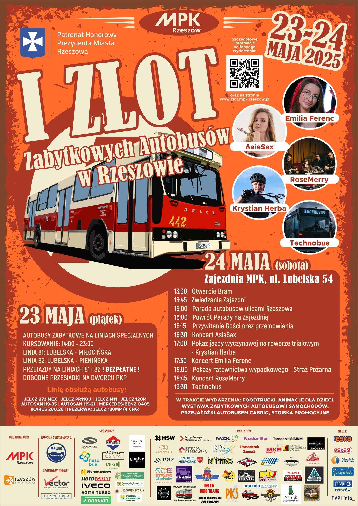 Miejskie Przedsiębiorstwo Komunikacyjne w Rzeszowie zaprasza na wyjątkowe wydarzenie — I Zlot Zabytkowych Autobusów. Impreza odbędzie się na terenie zajezdni MPK przy ul. Lubelskiej 54. Organizatorzy przygotowali liczne atrakcje dla rodzin, pasjonatów motoryzacji i mieszkańców miasta.