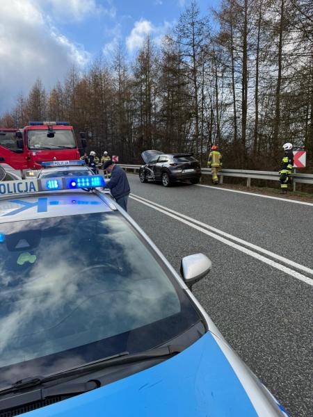 Czołowe zderzenie na drodze krajowej nr 77 na Podkarpaciu. Trzy osoby trafiły do szpitala [ZDJĘCIA]