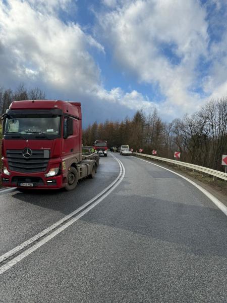 Ze wstępnych ustaleń policji wynika, że kierowca ciężarówki, obywatel Rumunii, nie dostosował prędkości do warunków. Naczepa wpadła w poślizg, zjechała na przeciwny pas ruchu i uderzyła w prawidłowo jadącą mazdę. Kierowca osobówki został uwięziony w pojeździe, strażacy pomogli mu wyjść z auta. Nikt nie doznał poważnych obrażeń.