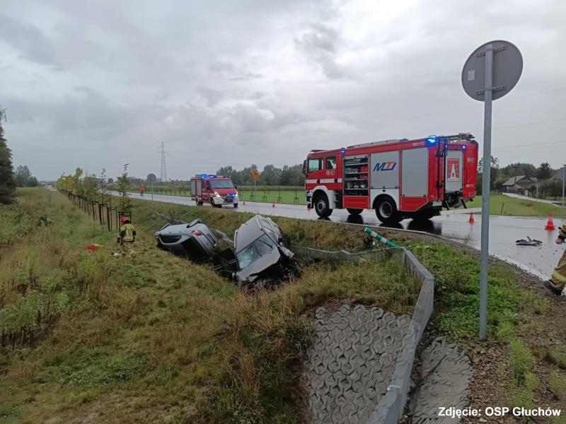 W kierunku autostrady A4 jechała toyotą 57-letnia mieszkanka województwa wielkopolskiego. W tym samym czasie z ul. Głuchowskiej wyjeżdżał 19-letni kierowca peugeota. Ze wstępnych ustaleń policji wynika, że to młody kierowca nie ustąpił pierwszeństwa przejazdu i spowodował zderzenie.