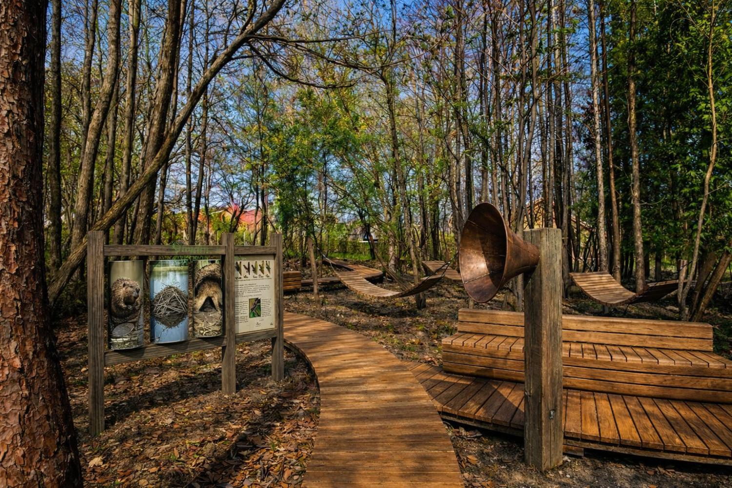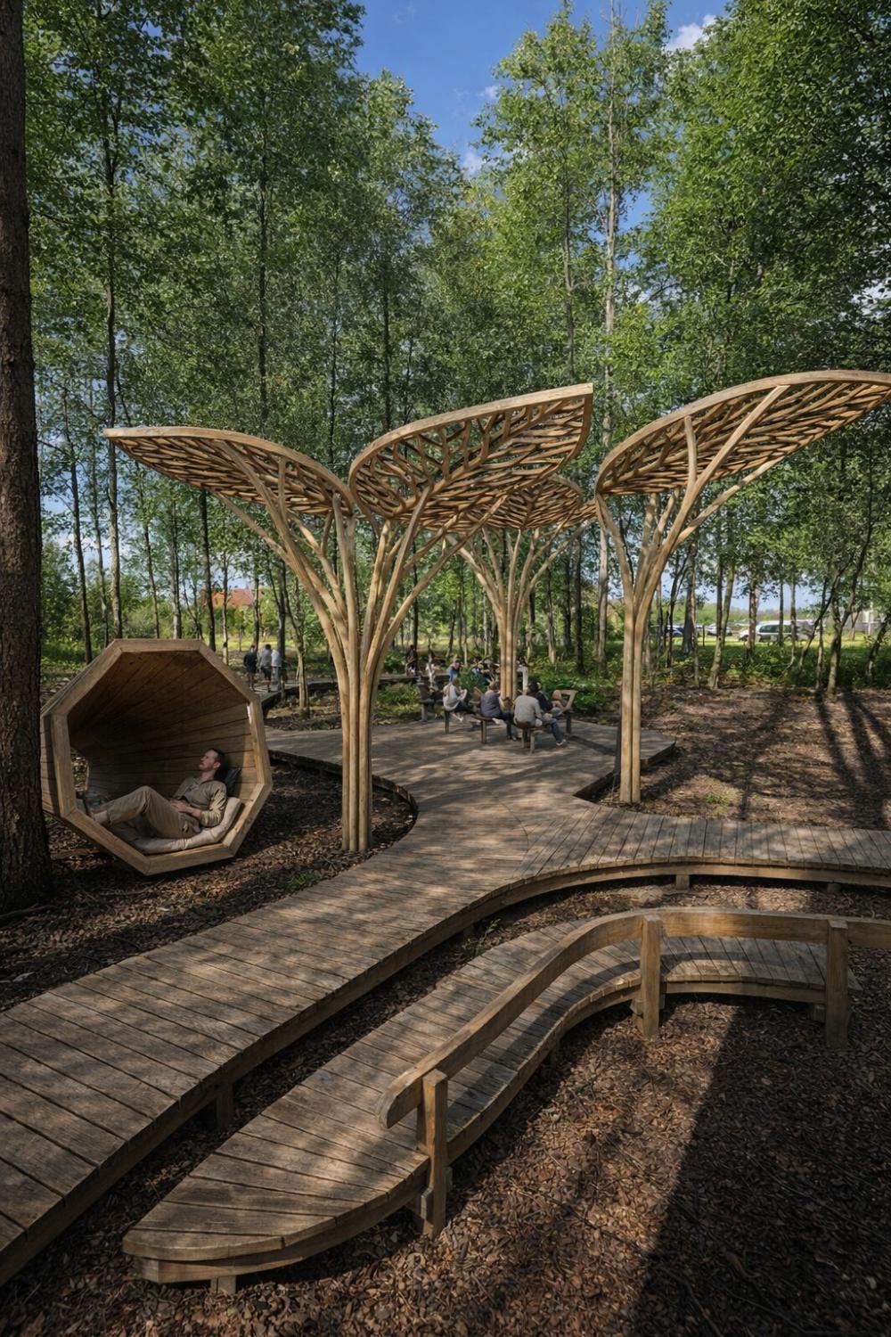 W projekcie przewidziano także strefy relaksu wyposażone w ławki, leżaki i hamaki, które pozwolą mieszkańcom zatrzymać się choć na chwilę. Uzupełnieniem całości będzie taras widokowy, z którego będzie można podziwiać okolicę oraz wsłuchać się w dźwięki natury. W tym pomogą nietypowe, drewniane megafony. To właśnie one mają stać się jednym z najbardziej charakterystycznych elementów tej przestrzeni.