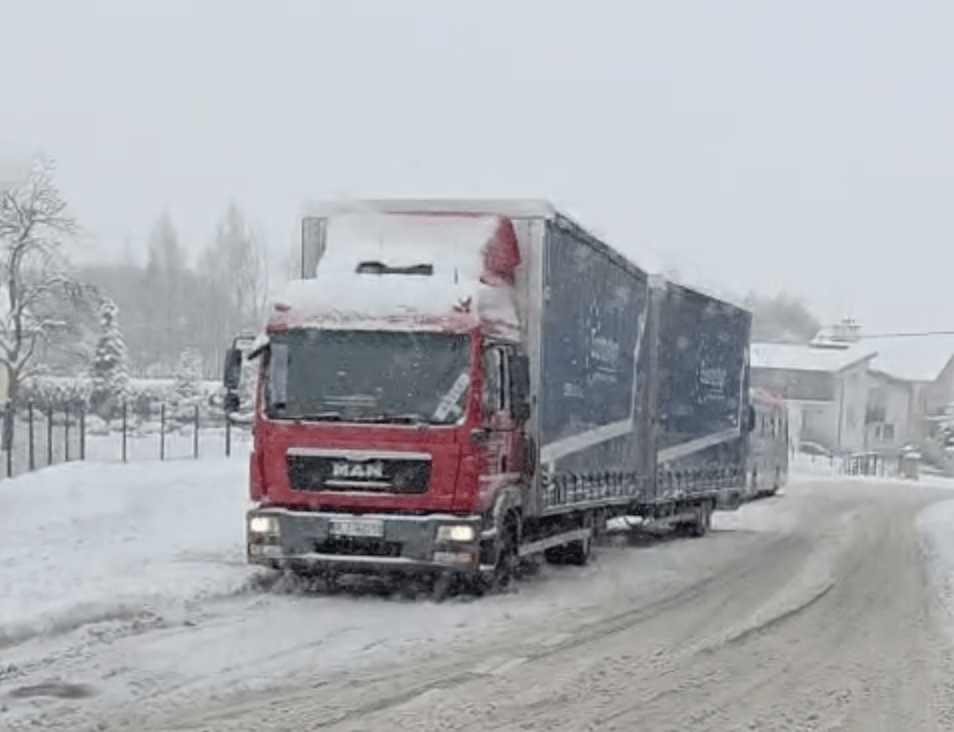 Najpoważniejsza sytuacja panuje na osiedlowych i bocznych drogach. Na Słocinie problemy z podjazdem pod wzniesienia miały ciężkie pojazdy. Otrzymaliśmy zdjęcia pokazujące tira oraz autobus miejski, które nie były w stanie pokonać zaśnieżonej nawierzchni. Również na innych trasach widać, że warunki są ekstremalnie trudne – jezdnie pokryte są błotem pośniegowym, a widoczność ograniczona.