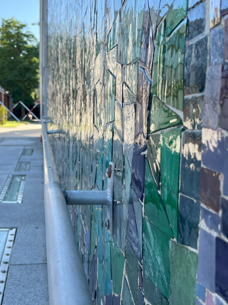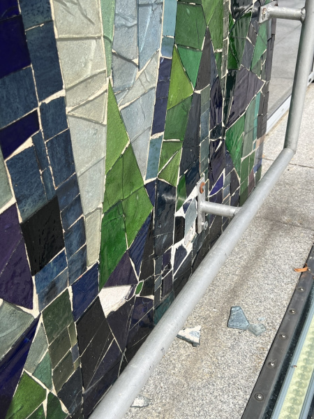 Od lat mozaiki zasłaniane były jednak przez wielkoformatowe banery reklamowe promujące działalność instytucji. Jak zauważają przedstawiciele Strefy Działań Miejskich, stelaże mocujące reklamy zostały przymocowane bezpośrednio do mozaiki. Ich zdaniem doprowadziło to do trwałych uszkodzeń – na ścianach mają być widoczne odspojone fragmenty, które odpadły i leżą przy budynku.
