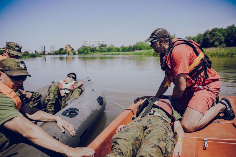 Ćwiczenia żołnierzy 3. PBOT i ratowników WOPR nad Wisłokiem w Rzeszowie (fot. Dowództwo Wojsk Obrony Terytorialnej)