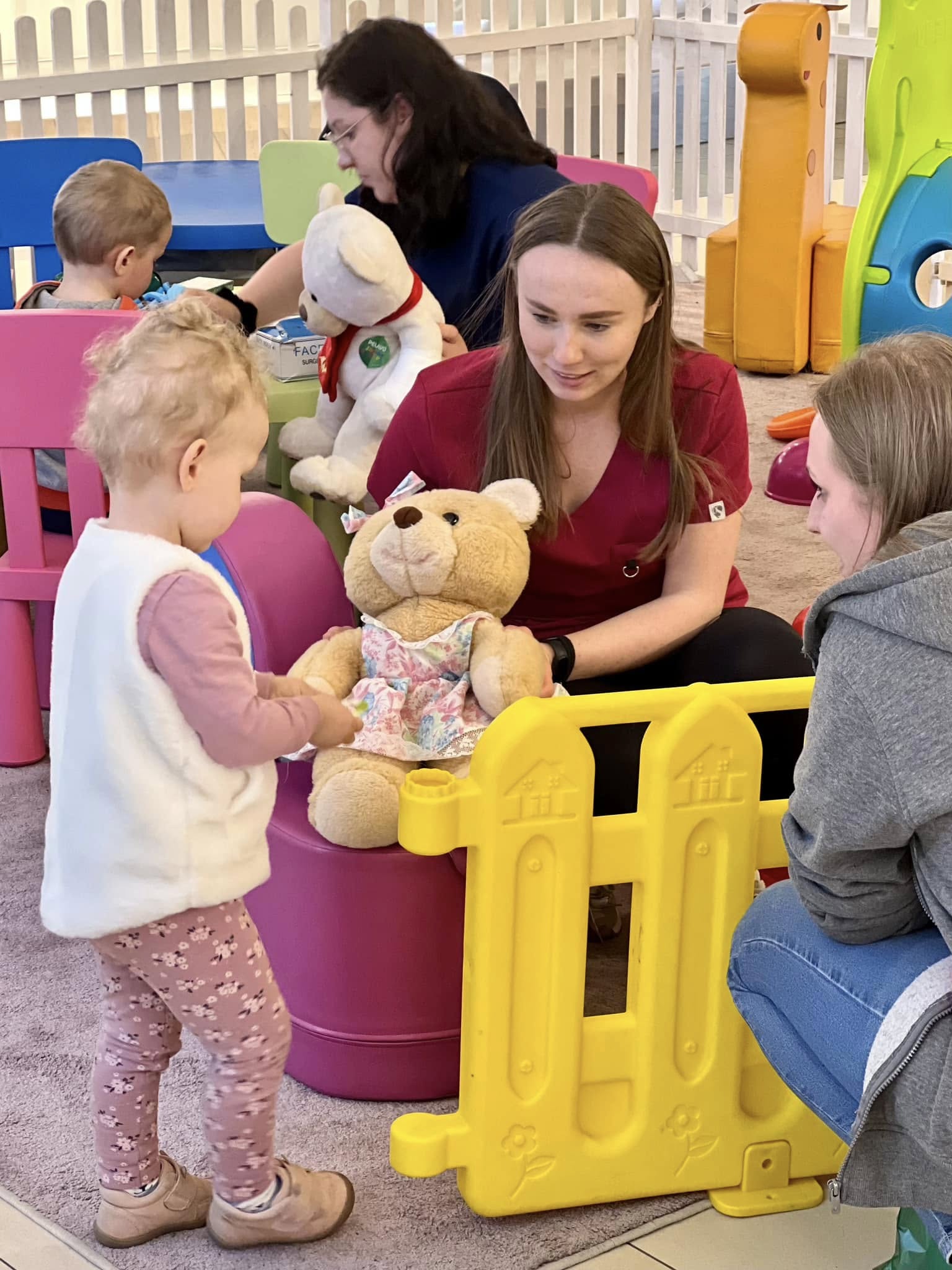 Z myślą o najmłodszych przygotowano „Szpital Pluszowego Misia”. To wyjątkowe warsztaty prowadzone we współpracy z Fundacją ISKIERKA, podczas których dzieci wcielają się w rolę lekarzy leczących swoje maskotki. Dzięki zabawie maluchy oswajają się z widokiem sprzętu medycznego i procedurami, co pomaga zredukować stres przed prawdziwymi wizytami w gabinecie lekarskim.