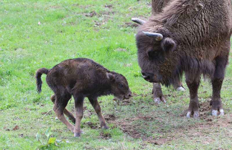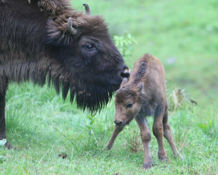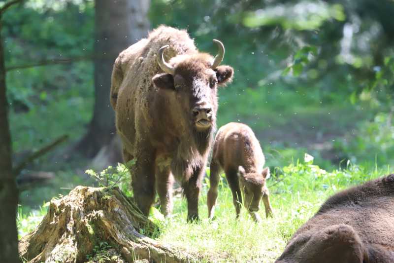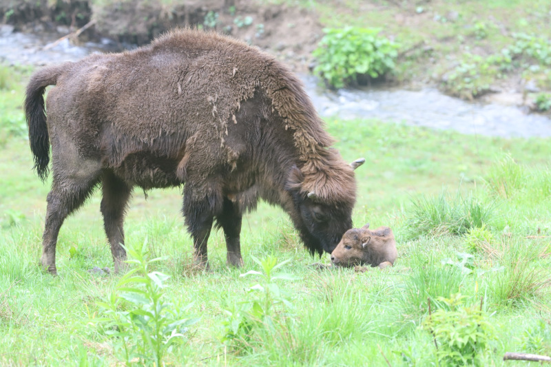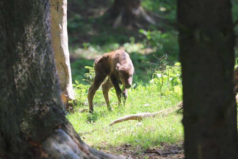 Trzy małe żubry przyszły na świat w ciągu dwóch tygodni maja w zagrodzie pokazowej w Mucznem w Bieszczadach. To wyjątkowo wczesne narodziny, bo większość młodych żubrów rodzi się zwykle w czerwcu i lipcu. Wszystkie żubry w Mucznem mają tego samego ojca – byka Spovida.